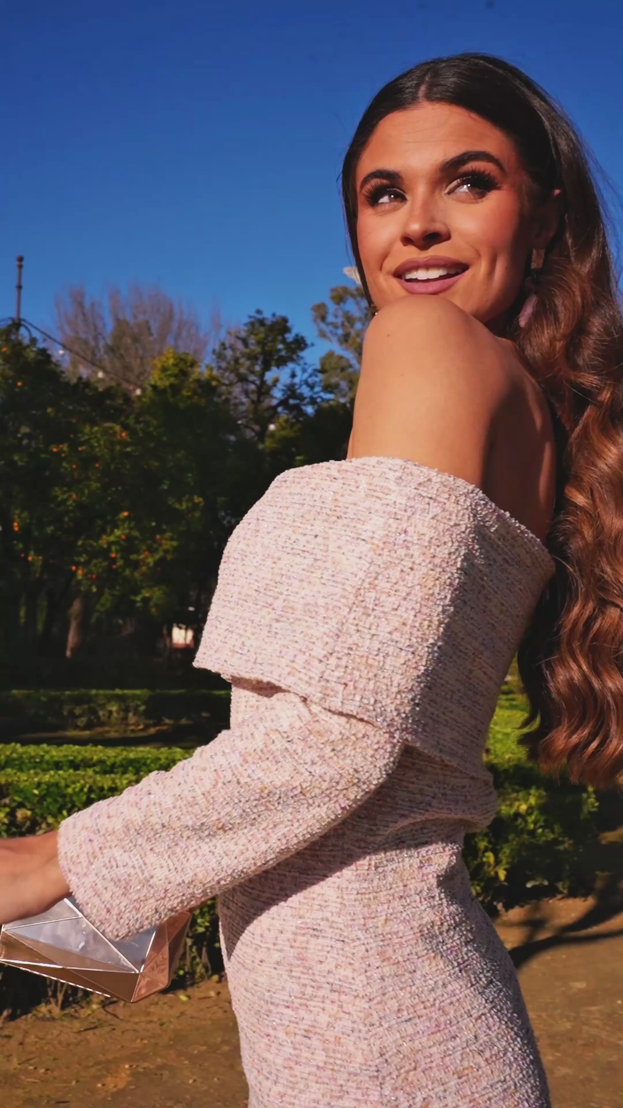 Si buscas un look que combine la estructura de la alta costura con la fluidez del estilo bohemio, este es tu vestido. Su tejido tipo tweed en tonos empolvados aporta esa elegancia clásica que nunca falla.